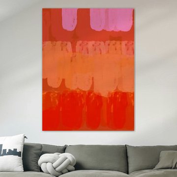 The warm glow wall art collection is filled with artworks with earth tone colours such as orange and terracotta, as well as rich pinks and ochre yellows. Buy beautiful terracotta paintings, or buy paintings with flowers and earth tones. You can buy our warm glow art prints on different high-quality materials. Think of a painting with earth tones on canvas or warm orange indoor wallpaper. Ochre yellow wall art is also very popular on glass, canvas or acoustic canvas.