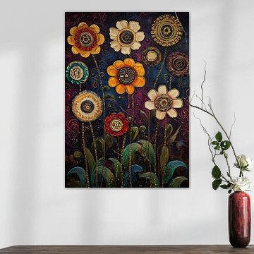 The warm glow wall art collection is filled with artworks with earth tone colours such as orange and terracotta, as well as rich pinks and ochre yellows. Buy beautiful terracotta paintings, or buy paintings with flowers and earth tones. You can buy our warm glow art prints on different high-quality materials. Think of a painting with earth tones on canvas or warm orange indoor wallpaper. Ochre yellow wall art is also very popular on glass, canvas or acoustic canvas.
