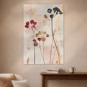 The warm glow wall art collection is filled with artworks with earth tone colours such as orange and terracotta, as well as rich pinks and ochre yellows. Buy beautiful terracotta paintings, or buy paintings with flowers and earth tones. You can buy our warm glow art prints on different high-quality materials. Think of a painting with earth tones on canvas or warm orange indoor wallpaper. Ochre yellow wall art is also very popular on glass, canvas or acoustic canvas.