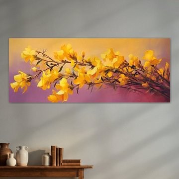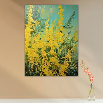 The warm glow wall art collection is filled with artworks with earth tone colours such as orange and terracotta, as well as rich pinks and ochre yellows. Buy beautiful terracotta paintings, or buy paintings with flowers and earth tones. You can buy our warm glow art prints on different high-quality materials. Think of a painting with earth tones on canvas or warm orange indoor wallpaper. Ochre yellow wall art is also very popular on glass, canvas or acoustic canvas.