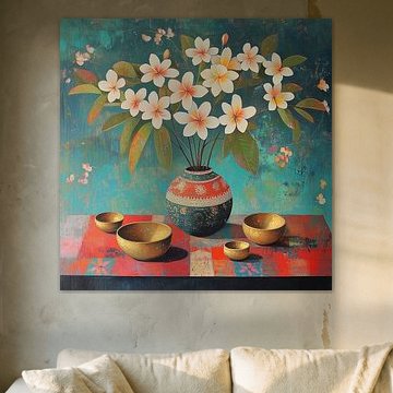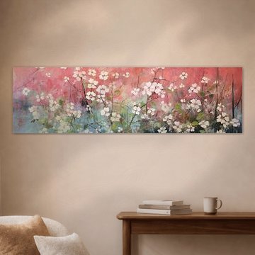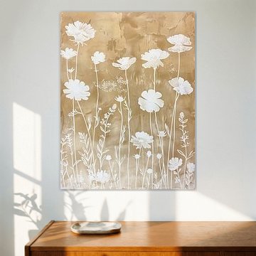 The warm glow wall art collection is filled with artworks with earth tone colours such as orange and terracotta, as well as rich pinks and ochre yellows. Buy beautiful terracotta paintings, or buy paintings with flowers and earth tones. You can buy our warm glow art prints on different high-quality materials. Think of a painting with earth tones on canvas or warm orange indoor wallpaper. Ochre yellow wall art is also very popular on glass, canvas or acoustic canvas.
