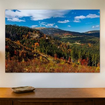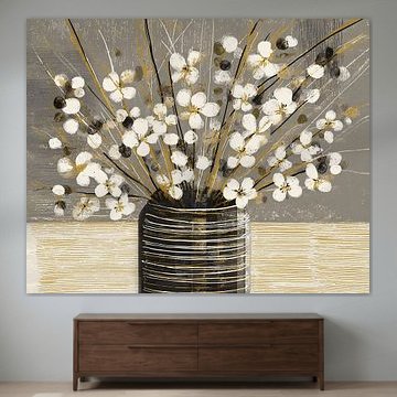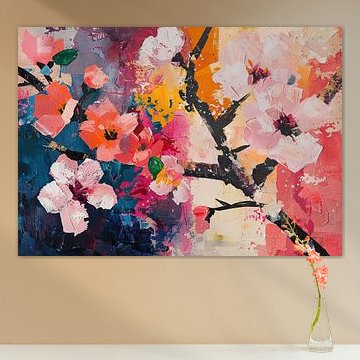 The warm glow wall art collection is filled with artworks with earth tone colours such as orange and terracotta, as well as rich pinks and ochre yellows. Buy beautiful terracotta paintings, or buy paintings with flowers and earth tones. You can buy our warm glow art prints on different high-quality materials. Think of a painting with earth tones on canvas or warm orange indoor wallpaper. Ochre yellow wall art is also very popular on glass, canvas or acoustic canvas.