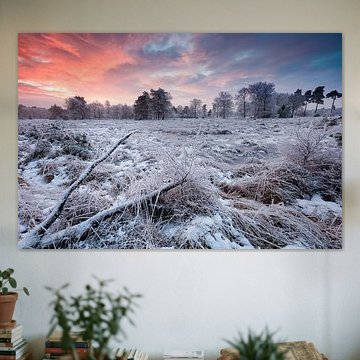Winter, the cosy cold season full of cheer. Buy the most beautiful winter landscape paintings or photo art of snowy mountains. You can buy winter art print on different high-quality materials. Think of an abstract winter landscape on large canvas, or go for old ice-skating photography on indoor wallpaper. All winter wall artworks can be ordered in your preferred dimensions, so you can enjoy them for many more winters to come.