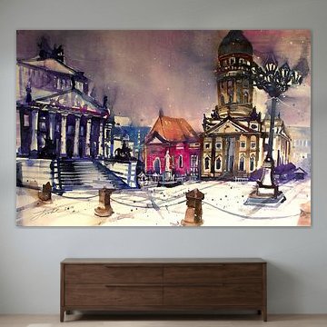 Winter, the cosy cold season full of cheer. Buy the most beautiful winter landscape paintings or photo art of snowy mountains. You can buy winter art print on different high-quality materials. Think of an abstract winter landscape on large canvas, or go for old ice-skating photography on indoor wallpaper. All winter wall artworks can be ordered in your preferred dimensions, so you can enjoy them for many more winters to come.