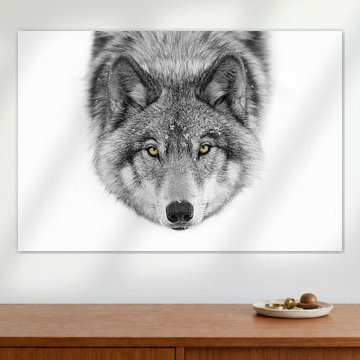 A painting of a wolf is beautiful and inspiring to hang on the wall. Buy a poster of a wolf, or choose for a wolf art print on canvas. Or have the wolf artwork printed life-size on photo wallpaper. There are several high quality materials available for your favourite wall art print of wolves. Choose your preferred size and enjoy the artwork for years to come.