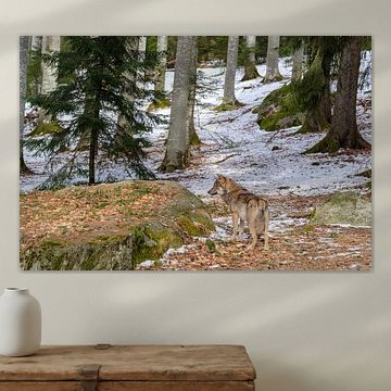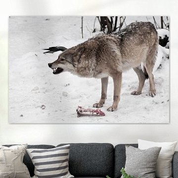 A painting of a wolf is beautiful and inspiring to hang on the wall. Buy a poster of a wolf, or choose for a wolf art print on canvas. Or have the wolf artwork printed life-size on photo wallpaper. There are several high quality materials available for your favourite wall art print of wolves. Choose your preferred size and enjoy the artwork for years to come.