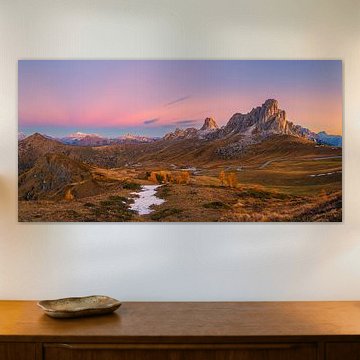 Panorama of a sunrise on the Giaupas, Dolomites, Italy
