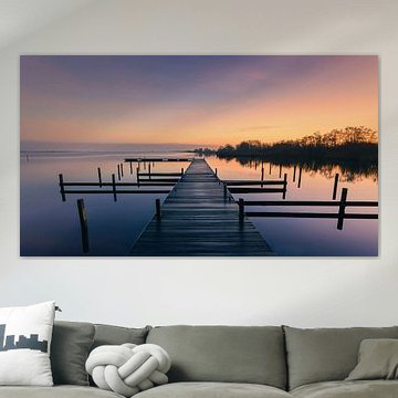 Sunrise at Lake Leekstermeer in Black and White