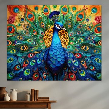 The peacock, with its lavish and colorful feather tail, symbolizes elegance, beauty, and pride. This majestic bird, often associated with the divine and royal, is known for its impressive courtship dance where the feathers are spread in a breathtaking display. Throughout the ages, the peacock has inspired artists, writers, and designers and remains a popular motif in various forms of art. Explore the beautiful paintings of peacocks here.