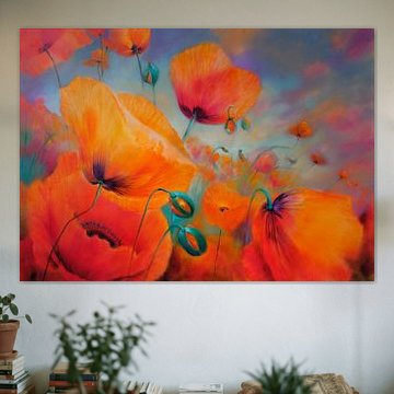 Poppies on canvas, poster, wallpaper and ArtFrame by Annette Schmucker