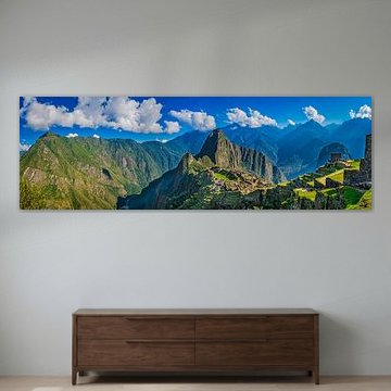 Wide panorama to the hidden city of Machu Picchu, Peru