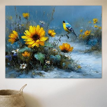 Vogel | Bird on canvas, poster, wallpaper and ArtFrame by Karina Brouwer
