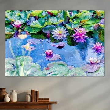 Waterlelies on canvas, poster, wallpaper and ArtFrame by Paula van den Akker