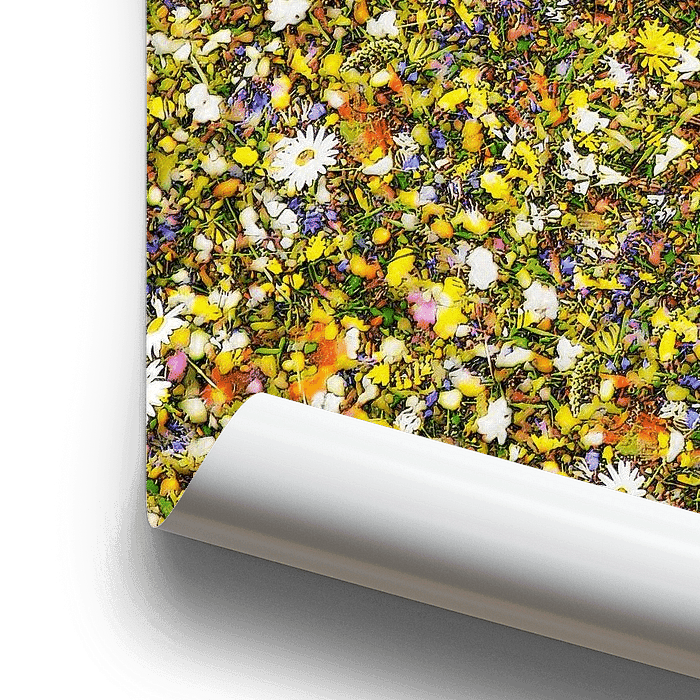 A very colourful and summery work, based on a picture of poppies, camille, dandelions, chicory and other wildflowers, a true festival for the bees.
