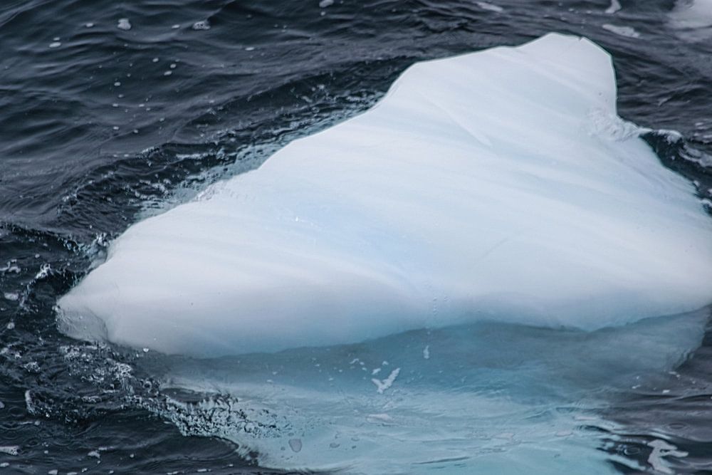 The longer an iceberg is in the water, the smaller it gets as a result of the forces of wind and water. A baby iceberg like this one must have been floating around in the Gerlache Strait in the Antarctic Peninsula for a long time already.