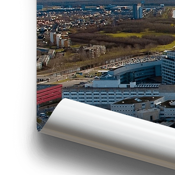 Buy this landscape artwork Almere vanuit de lucht by Brian Morgan on canvas, ArtFrame, poster and wallpaper, printed on demand in high quality.
