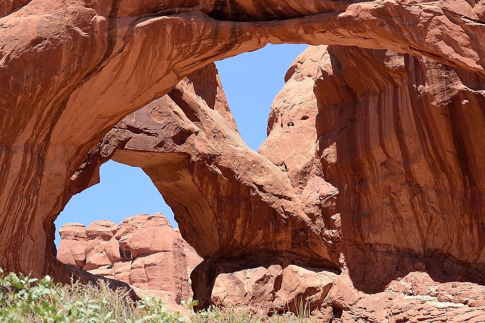 Almost at the Double Arch in Arches National Park, Utah, USA. Be prepared for a relatively easy but still strenuous walk from the parking lot, especially on a hot day like the one we had. Definitely go there though as this is one of the most scenic arches in the park.