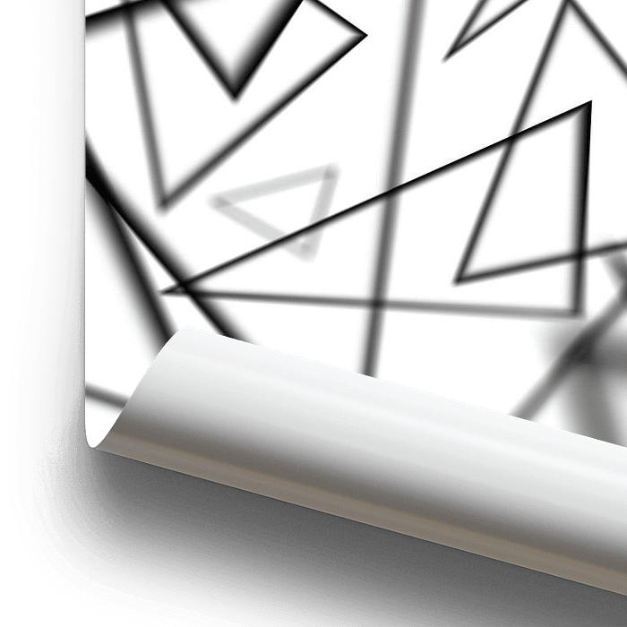 Black triangles with depth of field on a white background.