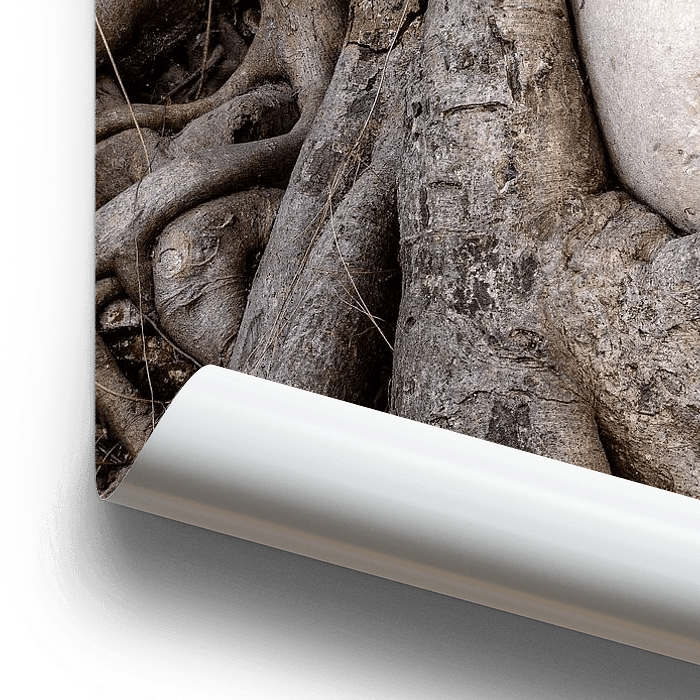 The face of Buddha entwined in a tree.
