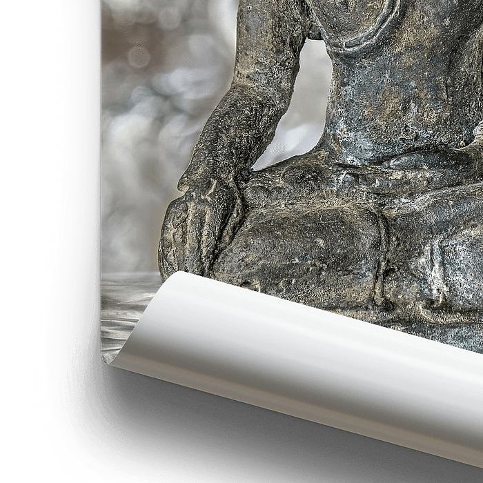 Closeup of a copper buddha figurine on a reflecting surface, full of crisp details and with a sparkling bokeh as a background. The image of the meditating spiritual leader Buddha has been symbolic for wisdom, relaxation and inner peace for 2500 years.