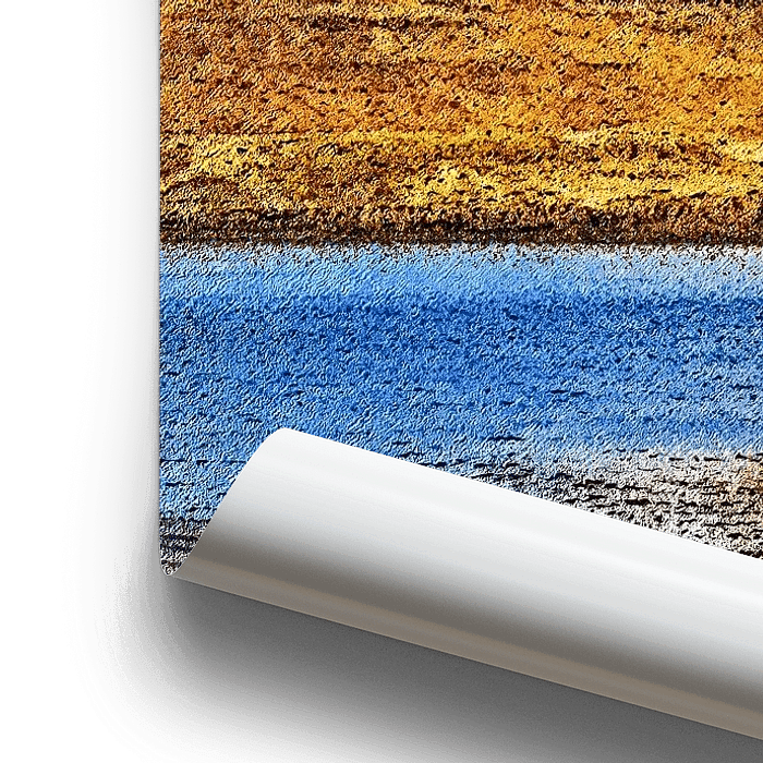 This digital painting is an adaptation of a photograph taken in May 2022. The month of May had begun, even by Icelandic standards, freezing cold; hence on the upper half of the mountain the snow that had fallen the day before. But on this day, spring seemed to have begun in Iceland as well: the sun broke through and it was windless, causing the mountain to reflect in the front part of the bay.