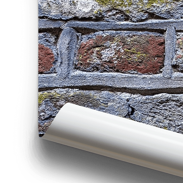 A fragment of a preserved part of the city walls of Zwolle, The Netherlands. The richly varied color palette, ranging from red, brown and orange to green and even purplish blue, is held together by the shadow effect of the protruding joints.