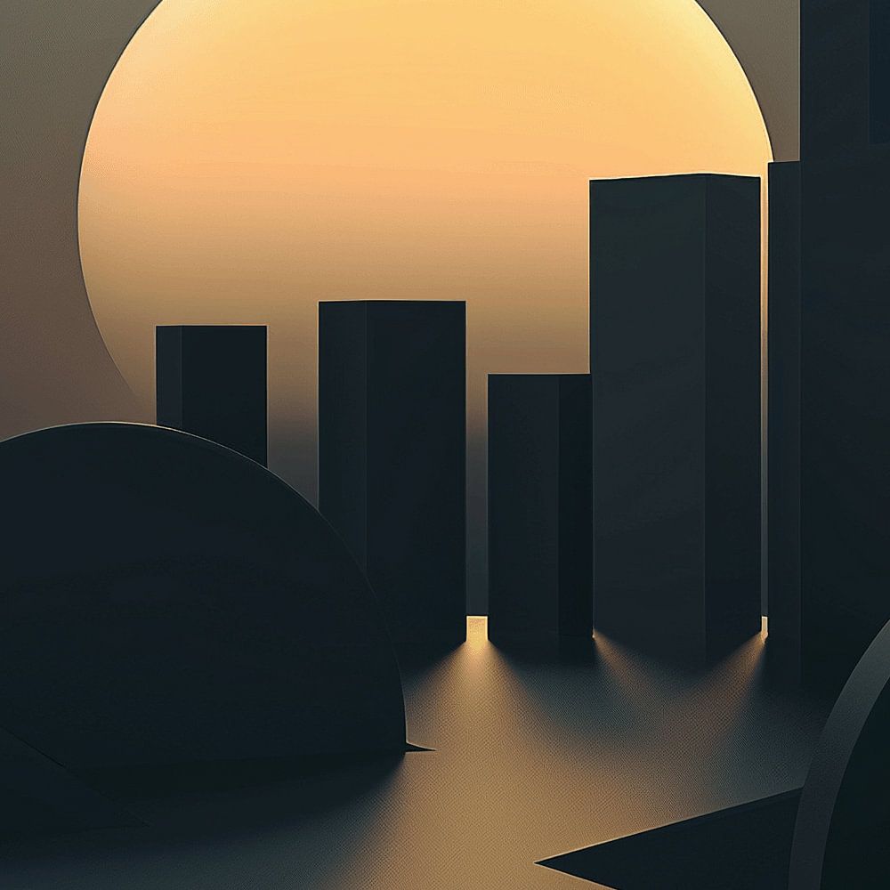 Buy this abstract artwork Cityscape in Sunrise - Light over the Streets by Karina Brouwer on canvas, ArtFrame, poster and wallpaper, printed on demand in high quality.