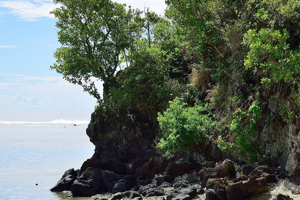 The smaller sister islet of Futi Rock lies next to the bigger Fatu Rock on American Samoa. This is a close-up of Futi Rock.
