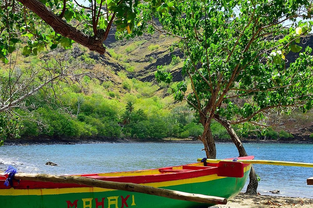 Spending time at this beach near the small village of Ho'oumi on the island of Nuku Hiva, part of the Marquesas Islands in French Polynesia. We loved this colourful boat on the beach.