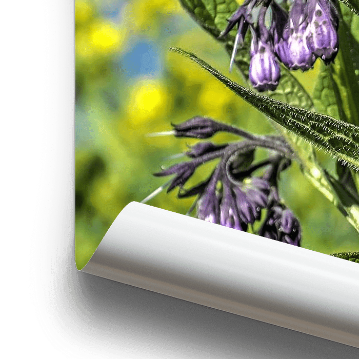 The abundant yellow and white of rapeseed and cow parsley on roadsides and fields in springtime, sometimes get a pretty purple color accent from the flowers of the symphytum officinale, known in English as common comfrey, used for centuries as a medicinal herb.