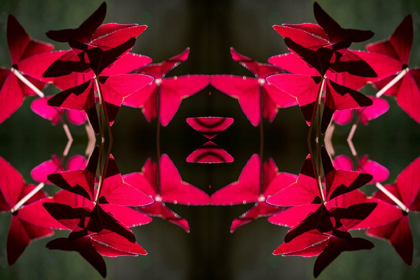 Dance of Light is an expressive and playful work of nature art that combines movement and symmetry. The basis of this work is macro photography of red-coloured leaves, which through reflection turn into a dynamic and almost living pattern. The shapes seem to float, reminiscent of butterflies or dancing silhouettes.