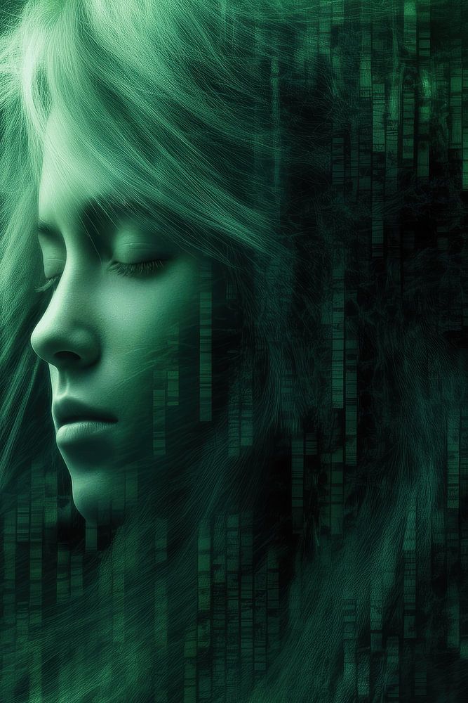 Introducing "Digital Dissolution," a captivating and surrealistic visual experience that transports you to another realm. This piece showcases a woman immersed in a striking green and black digital world, as her identity seamlessly dissolves into an enchanting virtual code. The unique glitchcore style adds depth and intrigue to this artwork. "Digital Dissolution" is a must-have piece for those who appreciate the blend of the human experience with the digital world, creating an alluring balance of mystery and beauty. With its ultra-high-definition resolution, this piece promises to make a statement in any space, as it pushes the boundaries of art and imagination.