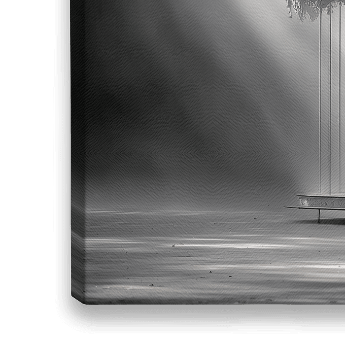Capture the ethereal beauty of a vintage carousel bathed in light with this stunning wall art. The artwork's soft highlights and muted tones evoke a nostalgic mood perfect for your home decor. Evoke wonder with "Empty Carousel" wall art. The monochrome scene, blending nostalgia and artistry, offers a stunning visual experience. Perfect…