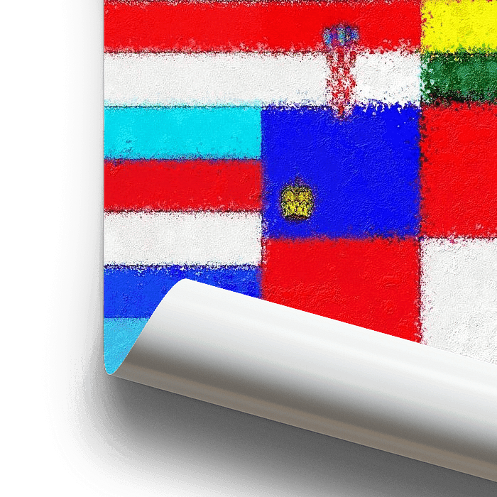 The flags of all countries in Europe as an impressionistic digital painting, with thick blobs of paint.