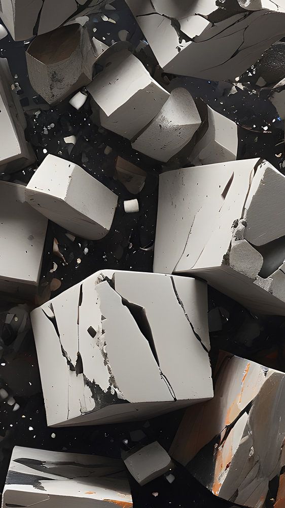Part of a series of artworks, this artwork presents a dynamic and explosive representation of cubes in varying stages of fragmentation and movement. The cubes, rendered in a palette of white, grey, black and orange, float and fracture in a three-dimensional space, creating a sense of energy and impact. Each composition in the series combines elements of geometric abstraction and futuristic art, with a clear influence of cubism and the style of artists such as Kazimir Malevich and Piet Mondrian. The clean lines and hard edges of the cubes are contrasted by the random and chaotic splits, creating a captivating tension between order and chaos.