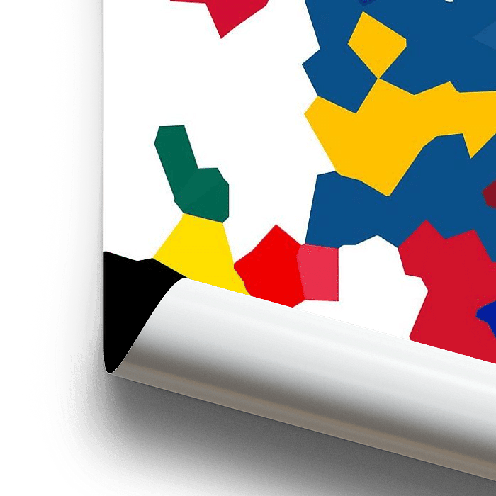 Between 2013 (the accession of Croatia) and 2020 (Brexit), the European Union had 28 member states. The flags of these countries are ordered here in such a way that the boundaries are fading:: colors, surfaces and lines flow into each other and create abstract patterns. Then a crystallization filter has been applied creating play of colors in which the individual flags are hardly recognizable.