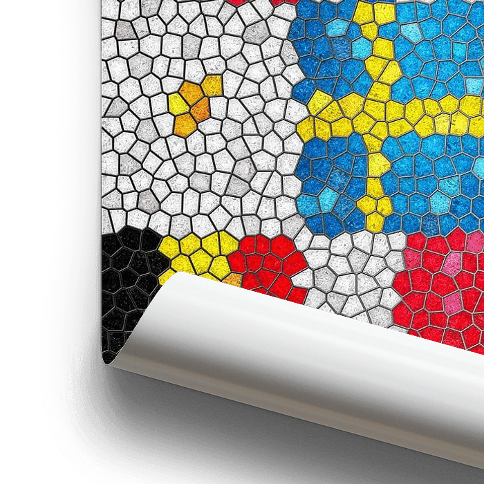 Between 2013 (the accession of Croatia) and 2020 (Brexit), the European Union had 28 member states. The flags of these countries are ordered here in such a way that the boundaries are fading:: colors, surfaces and lines flow into each other and create abstract patterns. The result is then further processed into a large virtual stained-glass window.