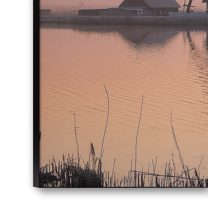 An enchanting morning in winter is captured in the photo "Foggy sunrise". The icy mist hovers over the waters of the Rottemeren, as the first rays of sunlight penetrate the haze. In the foreground is a beautiful windmill, shrouded in a haze of mystery. Across the calm water, another mill can be seen, enhanced by the misty backdrop.