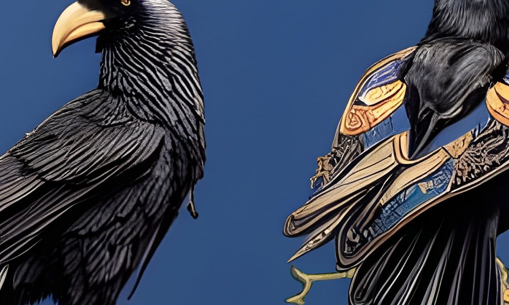 The darkest blue? Then I think of the sheen on a raven's feathers. This detail of a porcelain vase depicts Huginn and Muninn, Odin's ravens. Their names stand for 'remembering' and 'thinking', as they told Odin everything they had seen in the world. Does this vase really exist? No, the image was generated from many examples. It is not even a real photograph! But it is a real work of art, created digitally, especially for me, especially for you, lover of blue.