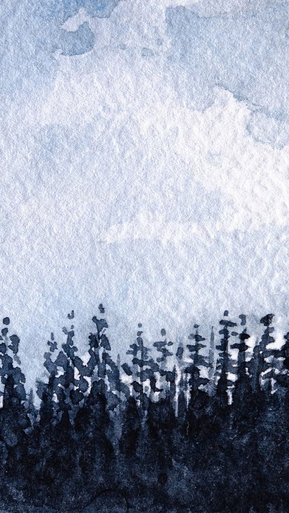 Forest of Serenity is a watercolour painting of a coniferous forest, executed entirely in soft, layered shades of blue.