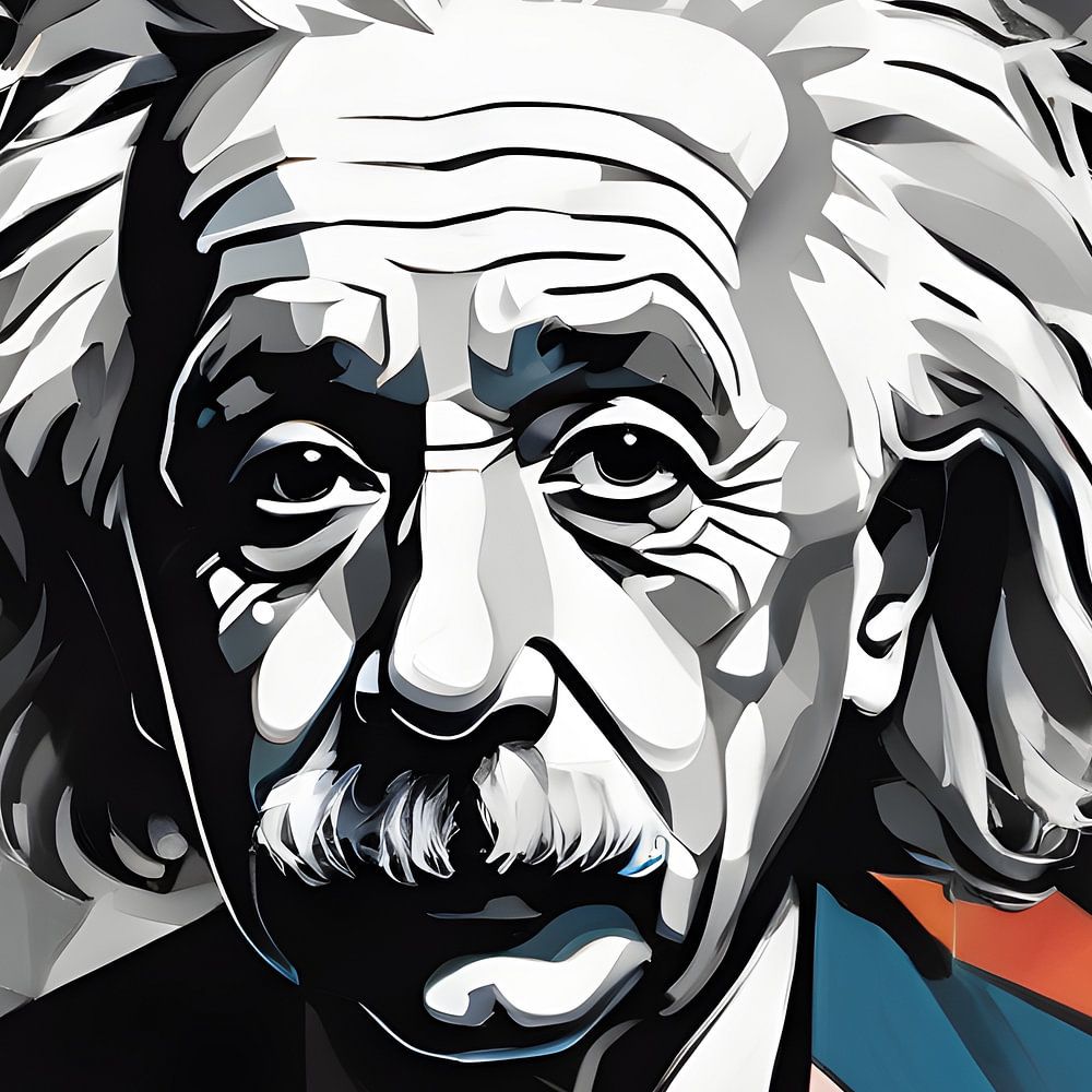 This artwork is a visual symphony capturing the essence of Albert Einstein, one of the greatest thinkers of modern times. It plays with light and shadow within an array of geometric shapes, creating a depth that emphasises both the complexity of personality and the simplicity of human nature. The black-and-white contrasts, enriched with subtle colour accents, give the portrait a timeless allure while maintaining a fresh and modern look.