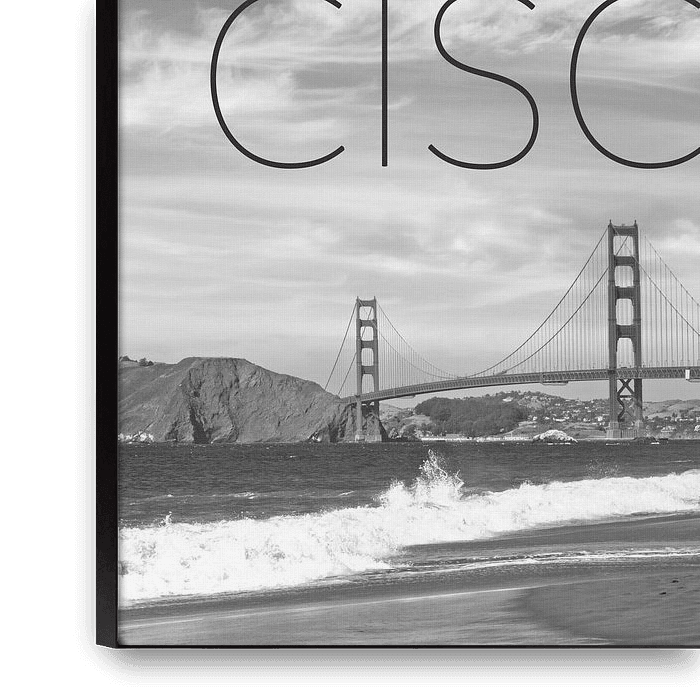 Buy the photo Golden Gate Bridge & Baker Beach | Text & Skyline by Melanie Viola on canvas, ArtFrame, poster and wallpaper, printed on demand in high quality.