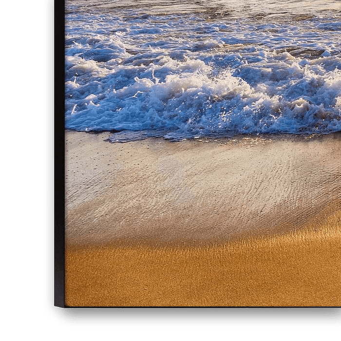 The sunset over the Atlantic Ocean along the beach of Le Truc Verte, on the French peninsula Cap Ferret, the sand turns gold. This photo was made in the Summer of 2018