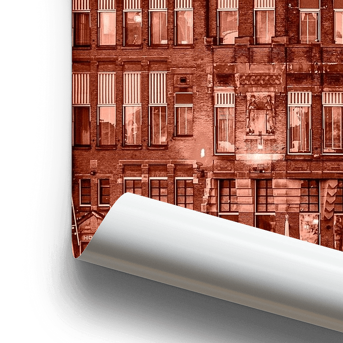 A monochrome image in sepia tones with on the left Hotel New York, the former head office of the Holland-America Line and on the right the grain silo at Katendrecht with the characteristic giant cube on the roof.