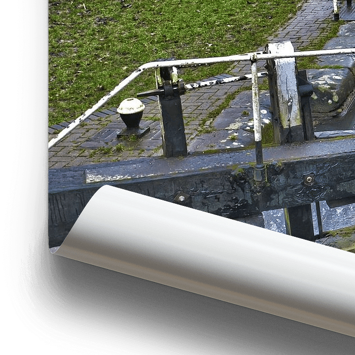 Grass and moss on the doors and walls of the lock and the reflection of the clouds in the mirror…
