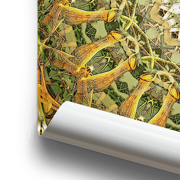 A kaleidoscopic image created by copying, rotating and blending a photograph of a nepenthes, a carnivorous tropical plant (money cup in English, kantong semar in Indonesian)