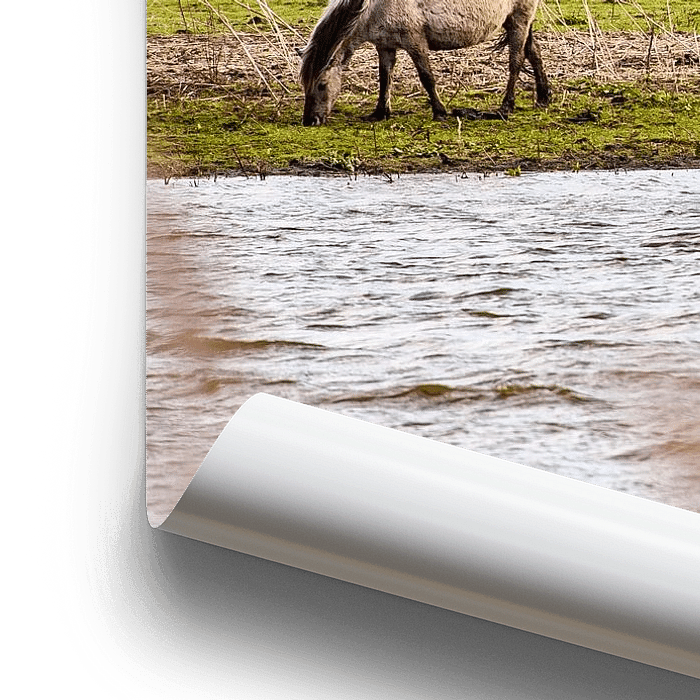 Buy this modern artwork Konikpaarden in Flevoland by Brian Morgan on canvas, ArtFrame, poster and wallpaper, printed on demand in high quality.