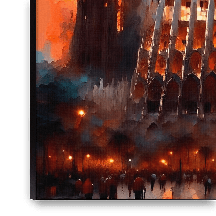 Immerse yourself in the magic of Barcelona with this captivating portrayal of La Sagrada Familia bathed in the golden hues of sunset. Gaudí's masterpiece comes alive in this stunning artwork, its intricate details and soaring spires illuminated by the setting sun. Let the vibrant energy of this iconic building transport you to the heart…