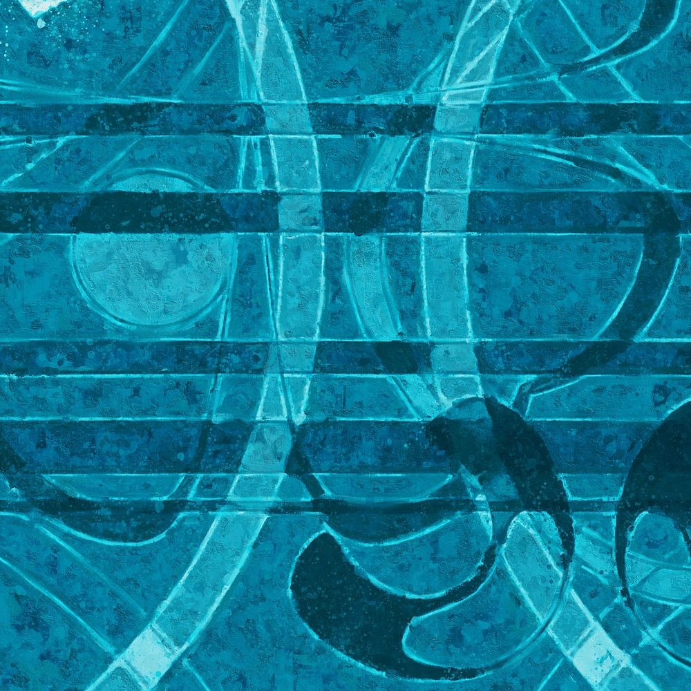 A modern blue abstract painting in which four-leaf clovers play the leading role. The high resolution makes this work perfect for large prints.