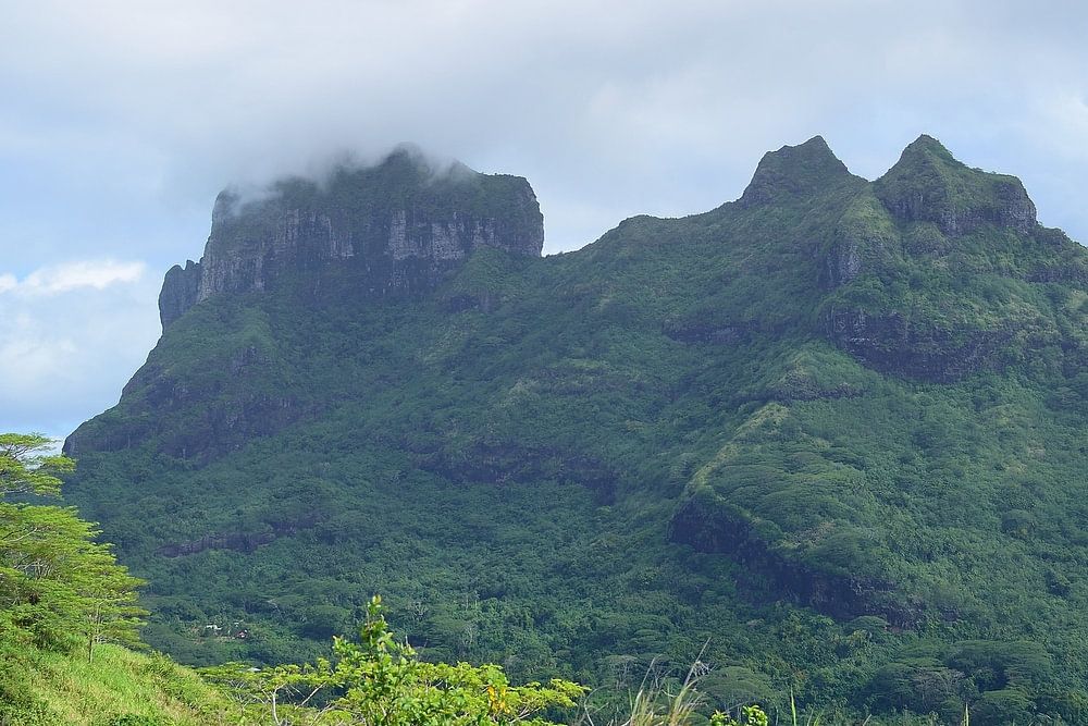 So many great views to choose from high up at Mont Popoti on the island of Bora Bora in French Polynesia. Here looking at Mont Pahia as its peak is touched by clouds.